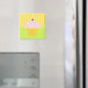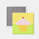 El magnetoscopio de quequitos muestra una deliciosa tarta y un agradable fondo verde lima con elementos amarillos.