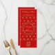 Estos menús de encargo de la boda ofrecen un fondo rojo profundo, real con el estampado de flores del color oro, un marco decorativo para destacar los nombres de novia y del novio, y una pequeña figura Ganesha. Coordina con la gama inspirada verdaderamente únicamente india de la boda y de los efectos de escritorio.