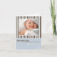 El " invierno raya" la invitación azul/marrón del nacimiento de la foto. Personalice esta plantilla moderna y elegante de la tarjeta de la foto con la foto y los detalles de su bebé para una única invitación del nacimiento.