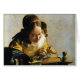 Un ajuste clásico de Vermeer que muestra una actividad nacional diaria en su haber sometido usual y trata tonos con suavidad.