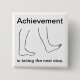 Dibujo simple de dos pies caminando, con la declaración, El logro es dar el siguiente paso, está impreso en botones de pin. Estos botones de afirmación son una excelente manera de animarse a uno mismo y a los demás. Gracias por comprar en PositiveAffirmation en Zazzle.