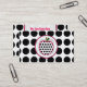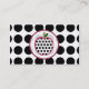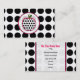 Una tarjeta de visita que ofrece un fondo negro del lunar sobre blanco con el borde rosado. Texto rosado y negro sobre blanco escarpado. Personalice con su información. El lado opuesto ofrece el fondo a juego del lunar. La manzana a juego del lunar dentro del círculo formó el marco rosado.