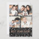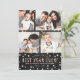 Familias de los adultos con tarjetas de fotos de vacaciones de Año Nuevo con cuatro fotos, y purpurina de oro blanco y rosa con aspecto de texto y puntos de confeti. Personalizado con sus propias fotos y nombres. Fondo negro texturizado. [Tenga en cuenta que mientras algunos elementos de esta tarjeta han sido diseñados para parecerse a un purpurina de oro, ningún purpurina real será usado en hacer las invitaciones - es solamente un efecto impreso.]