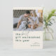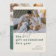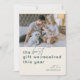 Presentar a su bebé al mundo con estilo con este anuncio de nacimiento minimalista esta temporada de vacaciones el encabezado dice "El mejor regalo que recibimos este año", que puede editar la última sección, el cielo es el límite. Con espacios de plantilla para 2 imágenes y un mensaje personalizado en la parte posterior.