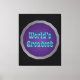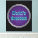 Este arte de pared muestra las palabras "la más grande del mundo" en un tipo de letra original con letras grises en negrita más un contorno azul verde azulado dentro de un círculo violeta con contorno gris/forro violeta. Nuestras impresiones se imprimen con la máxima resolución en papel de archivo de algodón-poli para una impresión de larga duración resistente a la desvanecimiento de 40.00" x 48.60". Esta impresión hará que la adición perfecta para iluminar cualquier casa u oficina.