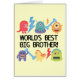 Camisetas, bolsas, imanes, botones, tarjetas, pegatinas, cadenas de llaves, mousepads y otras prendas de vestir y regalos del Gran Hermano del Mundo con un diseño de varios monstruos de apariencia tonta.
