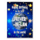 ¡Celebra a tu suegro con un toque cósmico! Esta tarjeta presenta una impresionante vista de la Tierra desde el espacio, con el más sincero mensaje: "Feliz cumpleaños al mejor suegro del mundo". Una manera perfecta de mostrar lo que significa para ti, sin importar la distancia, siempre es tu número uno.