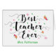 Agradezca a su profesor personalmente con este diseño elegante de la tipografía del estilo de la caligrafía, tarjeta delantera de encargo, ofreciendo el título, el "mejor profesor nunca." Placeholder debajo para que usted añada el nombre de su profesor. El tipo es rodeado por acentos florales y del verdor coloridos. Dentro de tiene este mensaje pero puede ser modificado para requisitos particulares para caber sus necesidades personales. Ayudas buenas de un profesor que usted mejora en clase. Un gran profesor le ayuda a amar aprender y alcanzar para las estrellas. El mejor profesor hace nunca todo el esto mientras que le ayuda haga una mejor persona. El mejor profesor es nunca usted. Gracias.