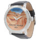 Este reloj de pulsera, con su singular rostro pintoresco y correa de cuero negro es un gran regalo para un jubilado, cumpleaños, Día del Padre, Navidades u otra ocasión. La cara de reloj es una foto original del paisaje que muestra la belleza de las formaciones rocosas estriadas en un remoto desierto en Arizona. Los colores naranja y marrón son las bellas obras de arte de la naturaleza. Los patrones estriados en las rocas fueron creados hace miles de años por la erosión causada por el viento y el agua. ¡Un paraíso para los fotógrafos! A los excursionistas les encanta esta ubicación. El texto es "¡El papá más grande del mundo!" y un nombre, pero se puede modificar fácilmente. Todos los derechos reservados © 2013 Alan & Marcia Socolik.