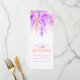 Moderno naranja púrpura abstracto tipo de vid acuarela floral boda menú de cena o menú especial de eventos. Edite este menú con su propio menú y cursos de cena. Moderno menú de arte de acuarela libre abstracto malva, malva y naranja. Ideal para glicinas primaverales o bodas florales morados y modernos bodas naranjas púrpura u otros eventos temáticos. © Diseño y pintura acuarela de Sarah Trett. www.sarahtrett.com para www.mylittleedenweddings.com en zazzle.