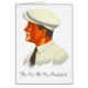 El texto es adaptable. Un caballero elegante y apuesto en los blancos que se divierten que llevan un casquillo o una boina. De un anuncio francés viejo de la tienda del gorra.