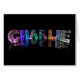Esta imagen es una fotografía de cartas hechas a mano, que cambian al azar, produciendo patrones únicos y colores de luz. El nombre Charlie se refleja en el agua residual, con hexágonos de Relieve metalizado flotante. Las letras parecen esculpidas de hielo o cristal. Si no puedes encontrar un nombre que quieras, por favor ponte en contacto, y lo pondré en mi lista. Por favor, visite NamesInLights.co.uk para más ejemplos del estándar de fotografía de estos productos.