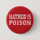 Una lectura media "ODIO del botón del perno-detrás (2.25-inch) ES VENENO" en las letras blancas de la coser-fuente en un fondo rojo.