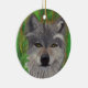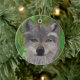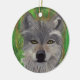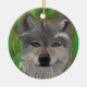Un bello lobo gris ojo robado pintado por la artista Jo-Ann Hayden hace para un asombroso adorno de árbol de Navidad