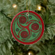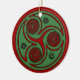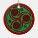 El ornamento espiral del navidad céltico. Capturando el alcohol de las vacaciones, este personalizable, coleccionable, ornamento de cerámica bilateral tiene una imagen de un espiral céltico verde del triskel en un fondo rojo. ¡Esto es un ornamento que se atesorará año tras año y es un gran regalo también! ¡El ornamento espiral del navidad céltico, lo compra hoy!