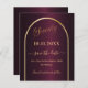 Una tarjeta Save the Date para una fiesta de cumpleaños número 70. Un fondo burdeos, decorado con un falso arco dorado. Personalice y agregue una fecha y su nombre. El texto: Setenty y Save the Date se escribe con un gran guión de estilo a mano a la moda. 1 hoja = 1 guardar la fecha de borde impreso en borde.