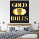 Este arte mural muestra un tema de lingotes de oro con las palabras "Reglas de oro" en un tipo de letra negrita dorada más "Quien controle el oro" en el centro con una letra negra sobre una cáscara dorada. Nuestras impresiones se imprimen con la máxima resolución en papel de archivo de algodón-poli para una impresión de larga duración resistente a la desvanecimiento de 40.00" x 48.60". Esta impresión hará que la adición perfecta para iluminar cualquier casa u oficina.