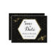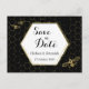¡Felicitaciones por tu compromiso! Ahora es el momento de compartir tus fantásticas noticias con tu más cercana y querida con esta linda abeja con la temática de color negro y hexágono de oro personalizado de patrón salvar la fecha! Personalizar con tus detalles y eres bueno para ir! Esta tarjeta es parte de una colección de bodas curados y coordinados llamada "Oh Honey Noir Boda" en la tienda Celebrations Studio donde hay una gama de artículos de papelería, decoración y productos de correo para bodas a juego.