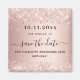 Una chica y de moda Salven el imán de la fecha para una fiesta de cumpleaños número 40 (o cualquier edad). Un fondo de color rosa y rosa que imita el estilo metálico de una mujer decorada con confetti de oro rosa. Personalice y agregue una fecha y nombre/edad 40. Letras de color oro rosa oscuro. El texto: Save the Date se escribe con un gran guión de estilo escrito a mano.