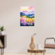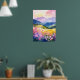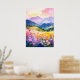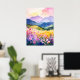 Esta serena pintura acuática le invita a disfrutar de un paisaje tranquilo y soñador. Los suaves colores pastel capturan un hermoso cielo sobre montañas en capas, mientras que un vibrante campo de flores silvestres rosas, violetas y amarillas da vida a las colinas onduladas. Perfecto para añadir un toque de calma y belleza natural a cualquier habitación.