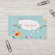 Esta tarjeta de visita tiene un diseño cuadrado azul en el fondo. Hay un pájaro anaranjado y rojo en la parte inferior al lado de varias plumas. En el top, hay algunas nubes hinchadas blancas donde usted puede modificar el nombre para requisitos particulares comercial y el decir o el lema en el frente. En la parte posterior, usted puede personalizar esto con su nombre y posición junto con la dirección del negocio. ¡Este diseño de la diversión podía trabajar para un boutique de la ropa de los niños, tienda al por menor, o aún para una guardería!
