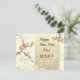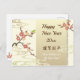 Un pájaro es Mejiro (ojos blancos japoneses) en un árbol estilizado de los flores del ciruelo en el fondo que tiene llamada japonesa Unryu del modelo en beige ligero. Los textos están en marrón oscuro y todos son adaptables. Esto es un ilustracion digital.