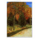 El parque público en Arles de Vincent van Gogh es una pintura vintage de arte fino postimpresionista de paisajes naturales. Un jardín con árboles en la temporada de otoño con una persona caminando por el sendero. Un camino a lo largo del borde de un bosque de otoño colorido con hojas naranjas a punto de caer.
