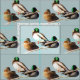 Esta tela del animal ofrece un modelo de repetición de tres patos del pato silvestre. Los varones tienen cabezas verdes iridiscentes, cuerpos blancos y picos amarillos. Las plumas de la hembra son marrones y oro con un pico anaranjado. ¡Son tales pájaros de agua bonitos! Modifique fácilmente el color de fondo para requisitos particulares azul claro al que se adaptará mejor a su proyecto especial.