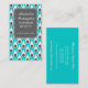 Esta tarjeta de visita del interiorista tiene diseño abstracto brillante de la aguamarina azul, gris, y blanco del vintage del pavo real de la pluma en el fondo en el frente. Usted puede modificar fácilmente la información del negocio para requisitos particulares sobre el frente y la parte posterior.