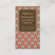 Esta tarjeta de visita del interiorista tiene un rosa de color salmón, un gris, y un diseño abstracto poner crema de la pluma del pavo real del vintage en el fondo en el frente. Usted puede modificar fácilmente la información del negocio para requisitos particulares sobre el frente y la parte posterior.