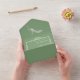 Invite a sus huéspedes a su próximo boda con un Moss Green Peacock Flourish All in One Wedding Invite. El diseño de Invite presenta un elegante pavo real adornado con una tarjeta de respuesta perforada. Personaliza con los nombres del novio y la novia junto con la fecha y el lugar del boda. También hay material de boda adicional disponible con este diseño.