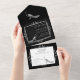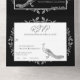 Invite a los huéspedes a su próximo boda con una invitación de Boda Negra Flourish All in One Wedding. El diseño de Invite presenta un elegante pavo real adornado con una tarjeta de respuesta perforada. Personaliza con los nombres del novio y la novia junto con la fecha y el lugar del boda. También hay material de boda adicional disponible con este diseño.