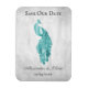 Anuncie su próximo día de bodas para la familia y los invitados con un Verde azulado Peacock Salve el imán de fecha. El diseño del imán presenta un vibrante pavo real que descansa sobre una delicada vid follaje blanco sobre un fondo de grano. Personaliza con los nombres del novio y la novia junto con la fecha del boda. También hay artículos de papelería y regalos adicionales para bodas disponibles con este diseño.
