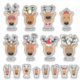 Rostros de todos los renos en el equipo de Santa con nombres.