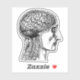 El grabado antiguo extraño y único muestra una sección transversal de la cabeza y el cerebro humanos.