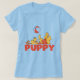 ¡El perrito juega las camisetas, las bolsas de asas, los pegatinas, las tazas, y más con un perrito adorable que miente en el suyo detrás vestidos en una camisa roja que juega con una pelota de playa roja y blanca!