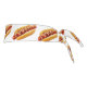 SlipperyJoe's hot dog anidado soft bun vibrante mostaza amarilla topping condiment carne asada cortada en espiral parrillada marca la comida comida apariencia carbonizada deliciosa delicia culinaria a la parrilla marca el orgullo gay regalos LGBTQIA verano artístico BBQ vibe zigzag patrón