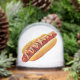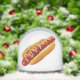SlipperyJoe's hot dog anidado soft bun vibrante mostaza amarilla topping condiment carne asada cortada en espiral parrillada marca la comida comida apariencia carbonizada deliciosa delicia culinaria a la parrilla marca el orgullo gay regalos LGBTQIA verano artístico BBQ vibe zigzag patrón