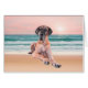 Perro lindo de Great Dane sentado en la playa. Añada el nombre o cualquier texto según sus requisitos.