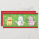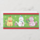 Diseño de vacaciones de Navidades de ilustracion de época con tres adorables gatitos con sombreros de Santa. Cañones de caramelo, coronas y regalos envueltos completan esta preciosa escena de Navidades. Las estrellas brillan sobre el fondo verde.