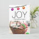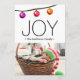El toque personal de la foto de los Navidades del bebé o de toda la familia con bolas adornadas con acuarela pintadas a mano, letra simple estilo san serif para la palabra "Alegría", enviar amor y buena alegría esta temporada de vacaciones. Personalice el saludo y los nombres de los Navidades especiales en la parte posterior de la tarjeta de saludo.