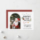Celebre la primera Navidad de su bebé con esta adorable postal que incluye un moderno diseño de arcos para resaltar la foto de su pequeño. La llamativa tipografía audaz combina maravillosamente con la escritura manuscrita encantadora, mientras que los acentos de las vacaciones acuáticas suaves le dan un toque cálido y festivo. Completamente personalizable con la foto de su bebé, su nombre familiar y nombres, esta postal es una manera dulce y elegante de compartir la alegría de las vacaciones con sus seres queridos.