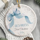 Bow Boy es el primer niño adorable de Navidad Celebrar la primera Navidad de tu pequeño con este adorable adorable adorno personalizado! Perfecto para el tesoro durante años, el primer adorno navideño de este bebé personalizado hace un dulce regalo de vacaciones para los nuevos padres, abuelos o para decorar tu propio árbol. Agregue el nombre, año o foto de su bebé para crear una memoria única y reconfortante.