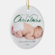 Ornamento de Navidad celebrando la primera Navidad del bebé con letras verdes