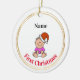 Este adorno navideño presenta a una bebé (de color rosa). En el frente, personalizar esto con el nombre del chica en la parte superior. ¿En el tipo de reverso del año que quieres o una fecha de nacimiento? También tengo esto para un bebé. Diseñado por Sheila Cicchi, Brownielocks.com. Todos Los Derechos Reservados.