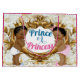 Príncipe africano o princesa de África género Reveal Regalo Bolsa azul, rosa y oro Acentos Purpurinas Adorables Príncipe africano usando una corona de oro junto a una bella princesa africana usando una corona de oro en un elegante marco dorado sobre un fondo de mármol dorado y blanco con acentos purpurinas de oro. ©Señales de Fiesta de Miss Sassy
