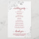 Estos programas de bodas son elegantes y de buen gusto, pero siguen siendo asequibles. El diseño presenta rizos de Relieve metalizado gris plateado ornamentados y remolinos con texto rojo intenso sobre un fondo blanco. La tipografía incluye caligrafía de escritura de encaje, y hay espacio para detalles de la ceremonia, la fiesta de las novias y un breve agradecimiento.