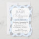 Lunares de plata del purpurina en fondo azul con diseño de tarjeta azul de la invitación de la fiesta de bienvenida al bebé de la bandera.