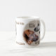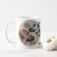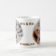 Una taza clásica del café con leche que ofrece un diseño de 2 perros, Brin y kilos del rescate del nowzad a ambos lados de la taza.