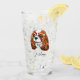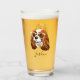 Características del este diseño un retrato de los vidrios que llevan arrogantes de un perro de aguas de rey Charles y una pajarita en un fondo rosado.